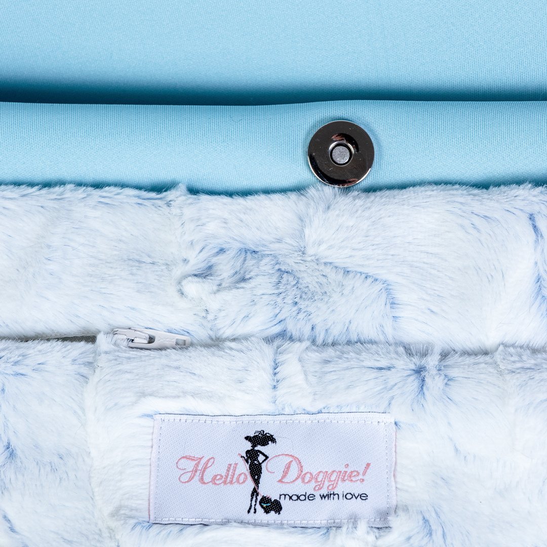 "The Signature Dog Sling is the latest and greatest way to keep your doggie comfortable anywhere you go, with twelve vibrant different colors to choose from; You'll be the talk of the town sporting one of these colorful pouches at your side. Its interior is lined with a soft faux cuddle mink fabric, with a satin pocket and a YKK zipper. Exterior material is made form neoprene fabric it's durable, machine washable and will keep your puppy warm by keeping out the chill. Gentle cycle to wash, no bleach or softener. Air dry or tumble low.  Sling features interior satin pocket, adjustable shoulder strap and interior safety tether. Available in 12 colors Measurements - 18"" L x 4"" W x 12"" H MSRP - $196.00 *Slings are handmade, sizes may vary slightly. Made in USA."