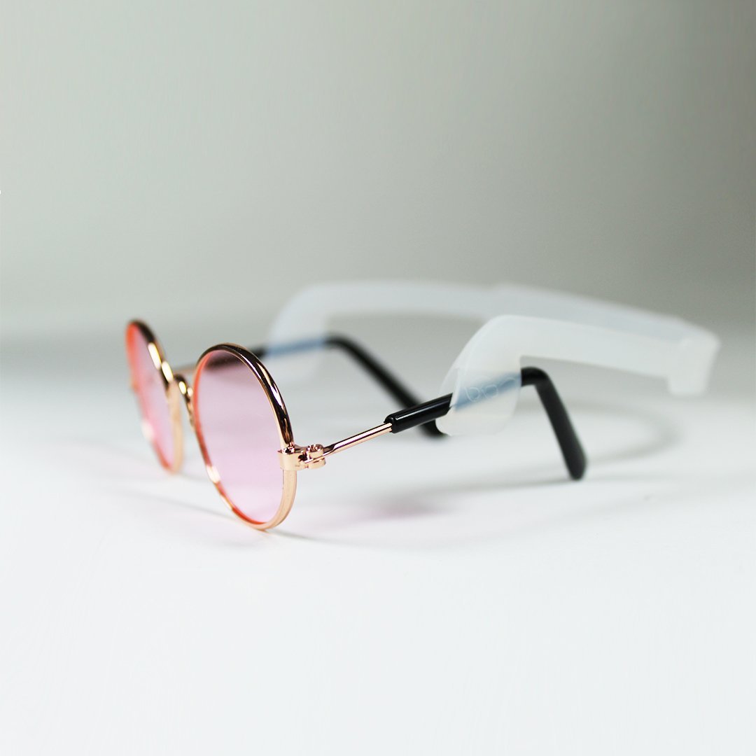 Complete your baby's outfit with a pair of our luxury pet sunglasses. You can choose to pair it with a clear strap or a black strap which keeps the sunglasses securely in place. These stylish glasses are accented with a rose gold frame to add that pizzazz to any attire. Size - Fits small dogs. MSRP $12.00